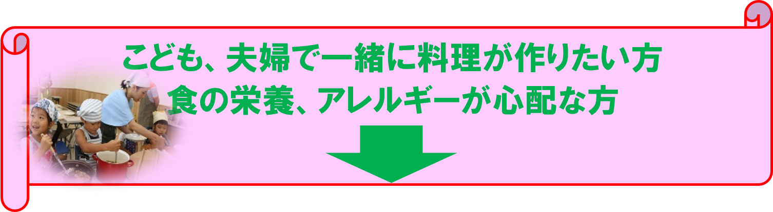 健康的な食のあり方を考えるとともに、一緒に料理をしたり、食べたり、食について学び、食育を通じた「心の豊かさ」を感じてください。