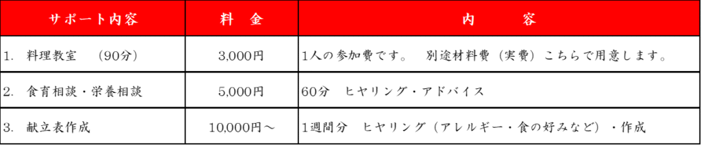 ※ 料理教室は、こちらで日時、場所、対象(個人・親子・夫婦など)を詳細を決めて、ホームページに掲載いたします。